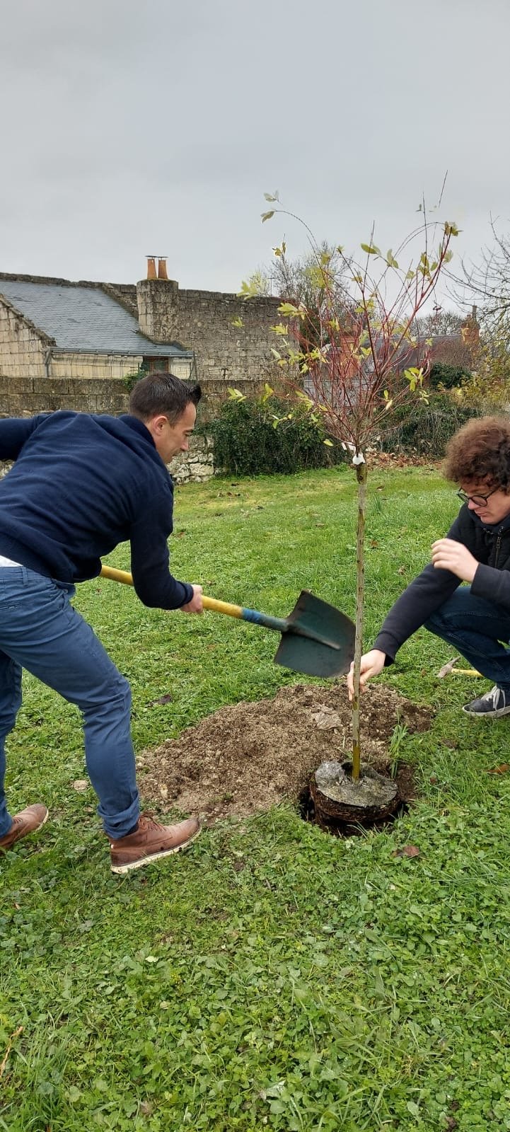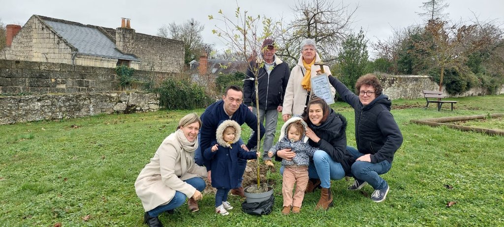 La cérémonie "Une naissance, un arbre" s'est déroulée ce matin à Souzay-Champigny. Deux enfants nés sur la commune en 2024 ont parrainé un nouvel arbre.